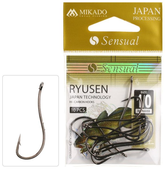 Odolné, kované a veľmi ostré háčiky Mikado Sensual Ryusen s krúžkom, navrhnuté špeciálne na lov morských rýb. Vhodné na použitie na živé aj mŕtve nástrahy. Vďaka dlhému, špeciálne profilovanému drieku a dvom protihrotom sa nástraha dobre upevní a zároveň je uľahčené vyslobodenie ulovenej ryby.