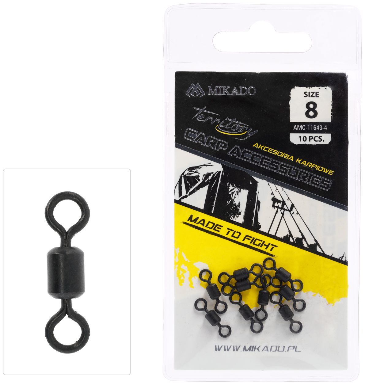 Ľahký a pevný obratlík, ideálny na tvorbu spoľahlivých spojov pri kaprovom love. Doporučené pre koncové zostavy, kde je požadovaná nenápadnosť (čierne matné prevedenie) a dostatočná nosnosť pre bežné kaprové techniky.