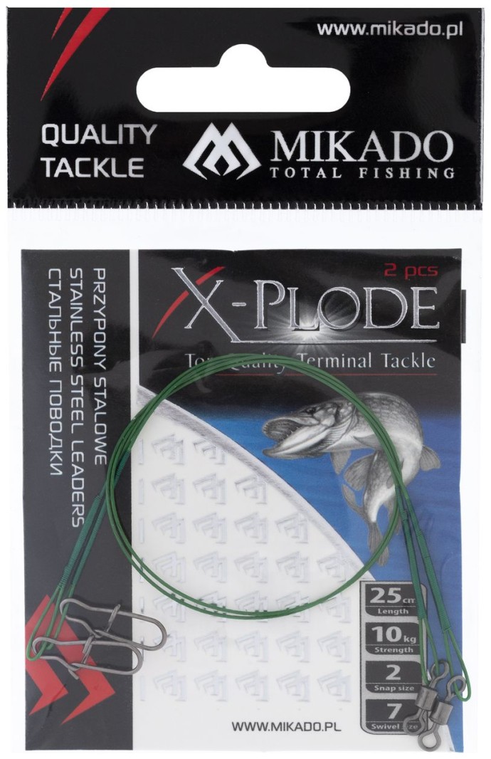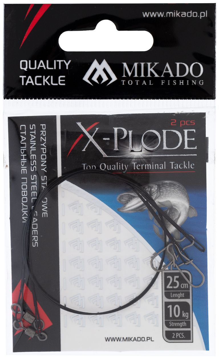 Hotové oceľové lanko Mikado X-Plode s guľovým obratlíkom, určené predovšetkým na lov dravcov. Pevné oceľové lanko zaisťuje vysokú odolnosť proti pretrhnutiu a poškodeniu, guľový obratlík umožňuje voľnejší pohyb nástrahy bez zamotania. Ideálny ako hotový náväzec pre nástrahy alebo ako spojovací prvok v predátorských montážach.