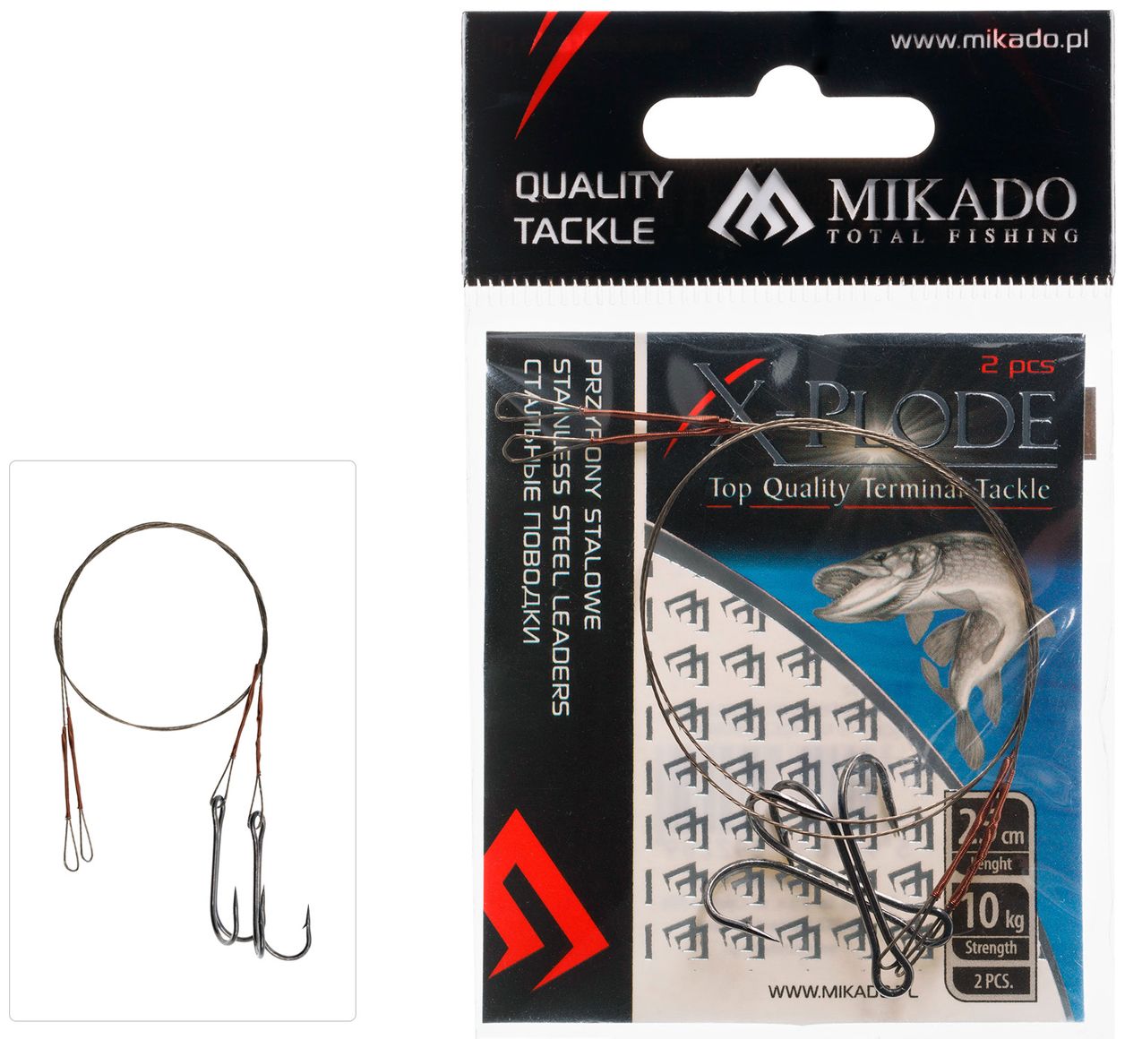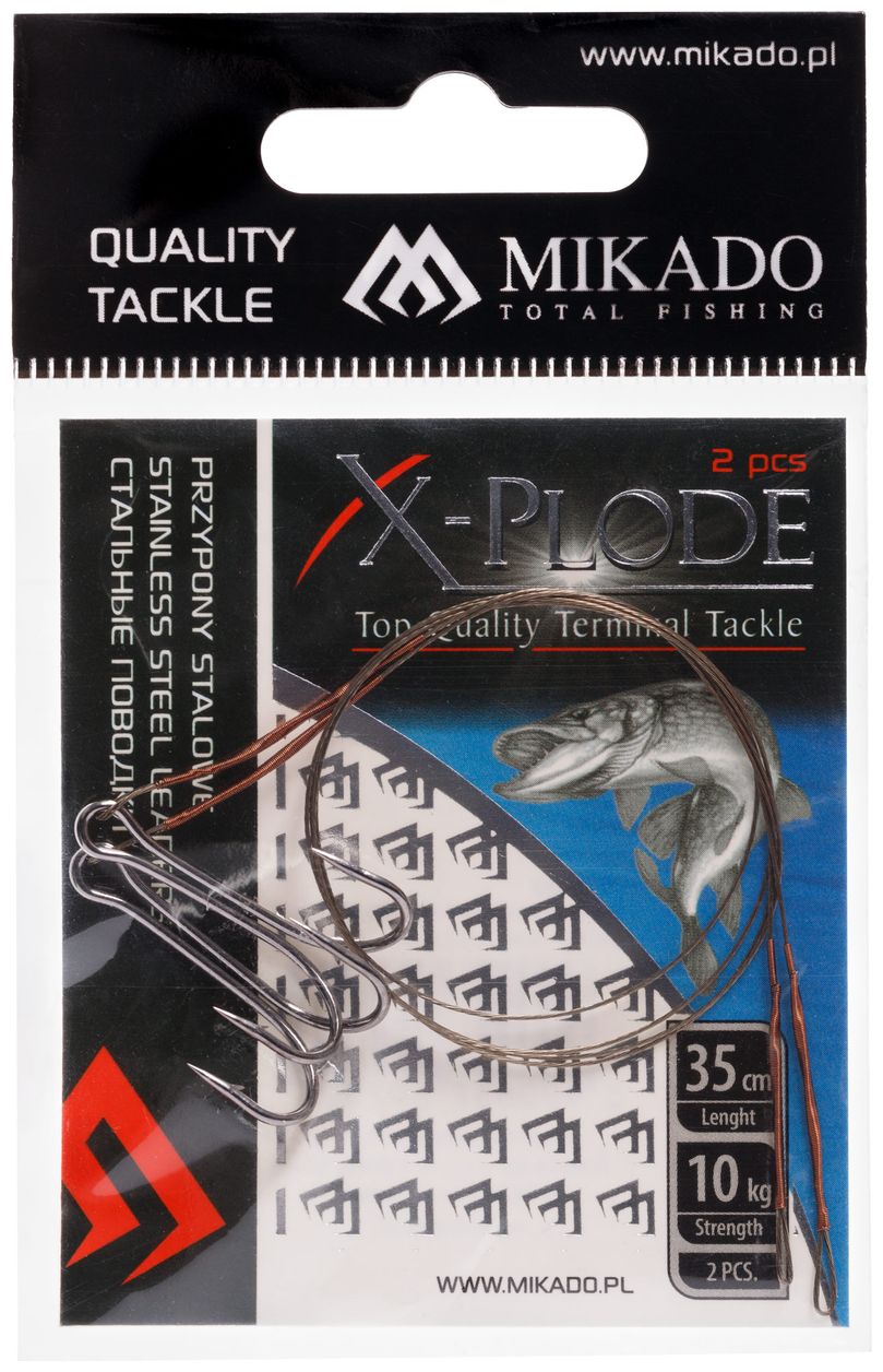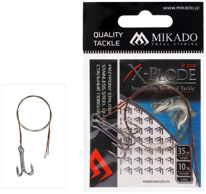 Náväzce Mikado X-Plode sú pripravené na okamžité použitie. Tento model je vyrobený z oceľového lanka a je opatrený zbrojeným dvojháčikom. Vďaka pevnosti a odolnosti sú vhodné pri love dravých rýb.