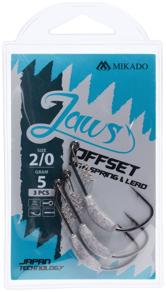 Offsetové jigové hlavičky série JAWS s extra ostrými hrotmi typu Delta Point a presne vyváženou záťažou v hmotnostiach 3g, 5g a 7g.