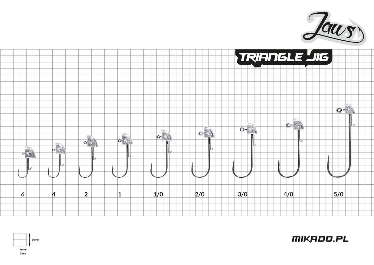 Trojuholníkové jigové hlavičky JAWS sú navrhnuté na použitie so softbaity typu zmáček. Sploštený tvar a špeciálny trojuholníkový profil hlavy zaisťujú dynamickejšie pohyby nástrahy vo vode, čo zvyšuje jej atraktivitu pre dravcov. Hlavičky sú osadené kvalitnými háčikmi vhodné pre prívlač.