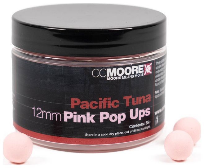 Pacific Tuna Pop Ups – vysoko kvalitné, veľmi plávajúce pop up guličky s priemerom 12 mm v jemnej vyblednutej ružovej farbe. Tieto nástrahy obsahujú silne mäsovú šupkovú príchuť a arómu Pacific Tuna, vďaka čomu sú ideálne na použitie samostatne alebo v kombinácii s ostatnými produktmi z radu Pacific Tuna boilies.