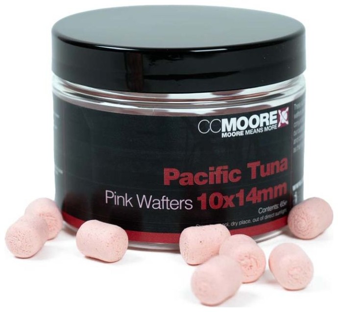 Táto bledoružová nástraha typu Dumbell Wafters je o veľkosti 10x14 mm a obsahuje silnú mäsitú shellfish arómu Pacific Tuna . Vďaka svojej vyváženej konštrukcii (wafter) sedí na dne tak, aby bola pre ryby prirodzená a zároveň dobre viditeľná, takže je ideálna na použitie samostatne alebo v kombinácii s boilies z radu Pacific Tuna.