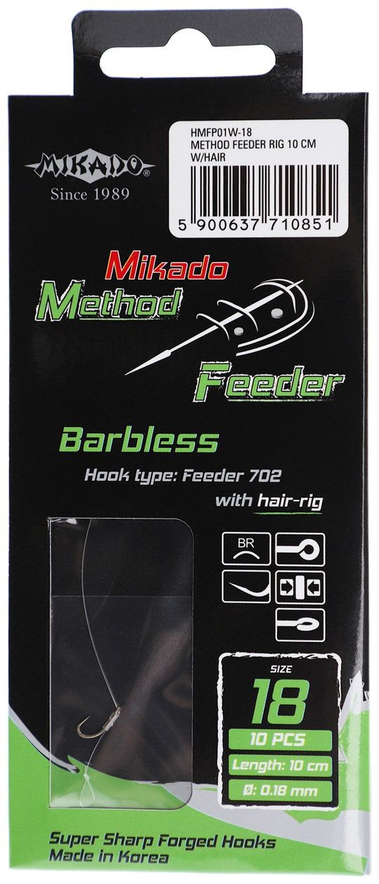 Tieto hotové náväzce šetria čas pri vode a poskytujú kvalitné pevné prevedenie vďaka použitej pletenej šnúre Nihonto Fine Braid. Ideálna voľba pre cielený lov kaprovitých rýb s method feeder krmítkom.