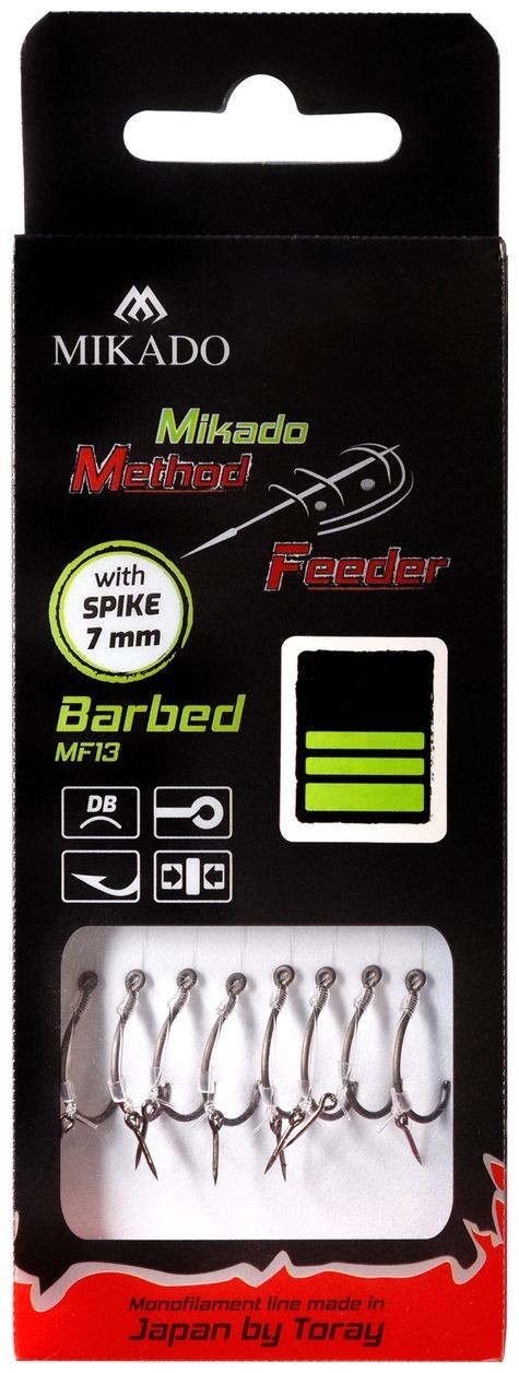 Profesionálne hotové náväzce určené pre method feeder. Náväzce sú osadené mimoriadne ostrými háčikmi radu MF (vr. MF13) so spätným hrotom a sú vybavené ihlou pre ľahké upevnenie nástrahy. Dĺžka náväzca 10 cm zaisťuje prirodzené správanie nástrahy blízko kŕmidla a umožňuje precízne a spoľahlivé prezentovanie nástrahy pri love kaprovitých druhov. Hotové náväzce šetria čas a zaručujú konzistentné prevedenie, vhodné na rýchle nasadenie priamo pri vode.