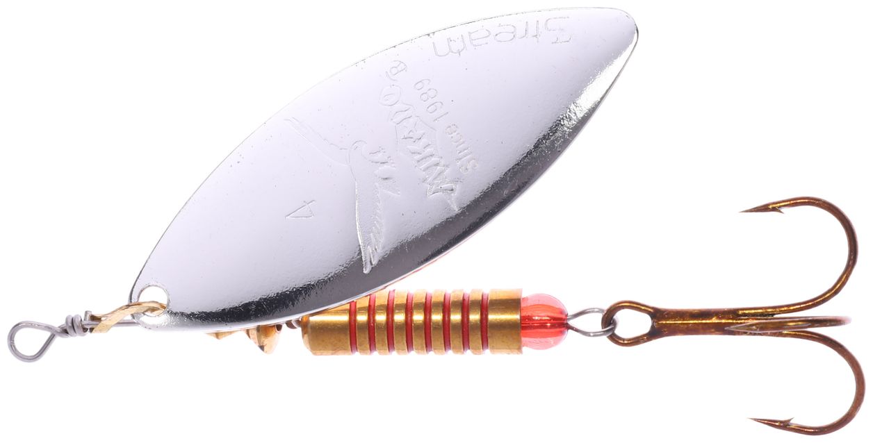 Rotačná trblietka Mikado Stream s krídelkom v tvare vŕbového lístka. Pracuje blízko tela pod uhlom približne 30 ° a verne imituje štíhlu rybku alebo hmyz. Vďaka svojmu tvaru je vhodná na vedenie pri dne v hlbokých a hlbších vodách; na riekach sa odporúča vedenie proti prúdu, kde trblietka lepšie pracuje.