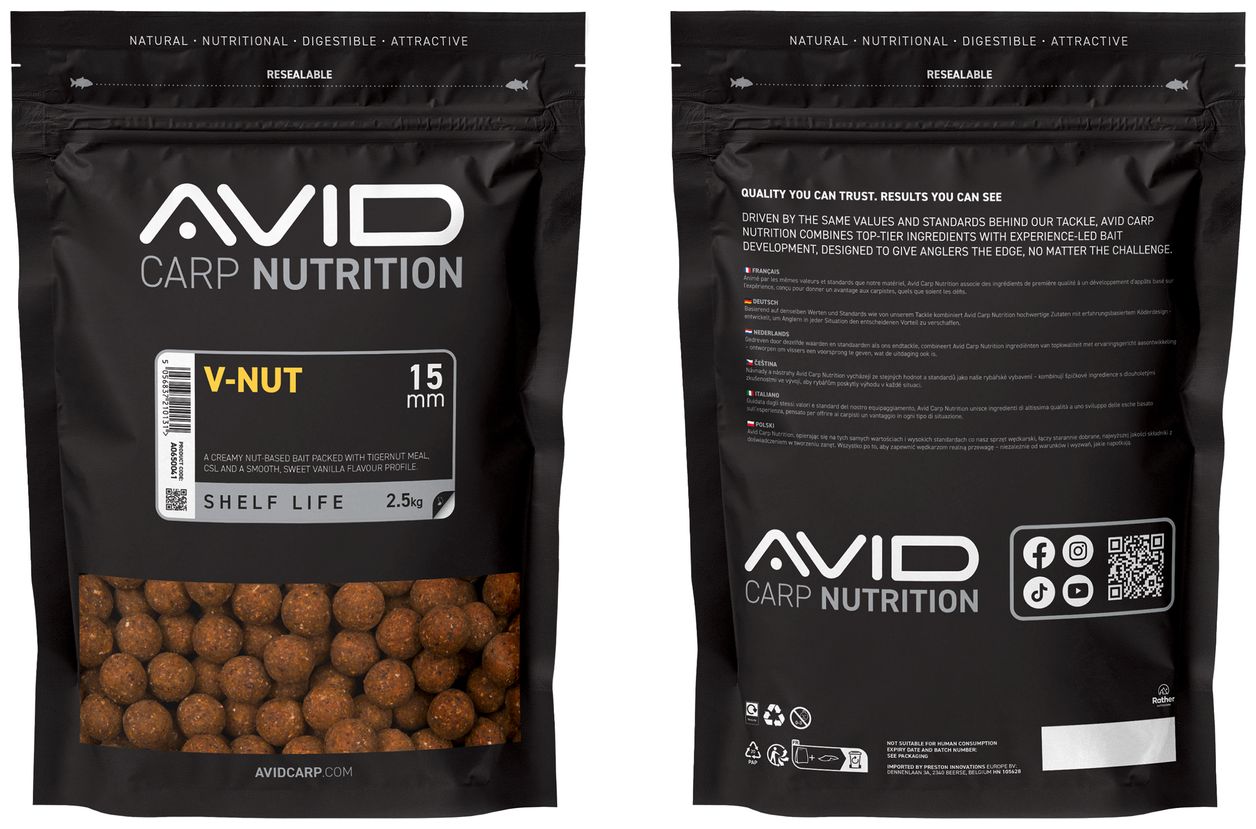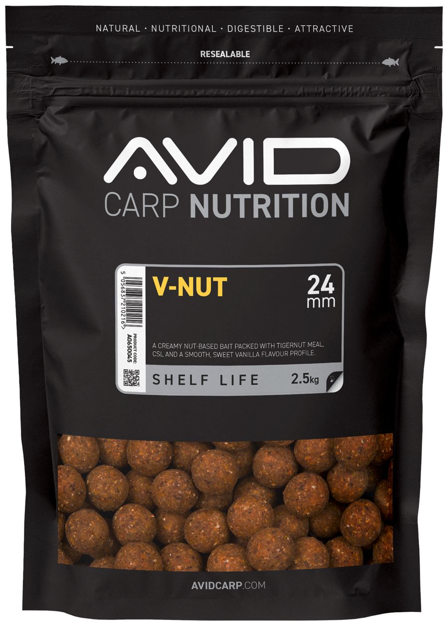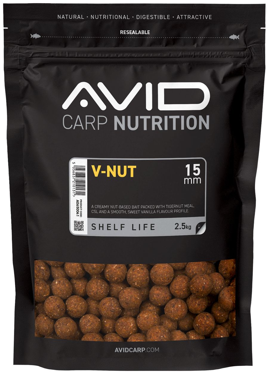 Boilies V-Nut Premium je prémiové krémové boilies na báze orechov, ktoré je plné tigrieho orecha, CSL a jemnej sladkej vanilkovej arómy. Táto nástraha kombinuje vysoko kvalitné, na živiny bohaté zložky, ako je múčka z tigriich orechov, so sladkou vanilkovou príchuťou. Výsledkom je neodolateľný krémový a sladký profil, ktorý láka kapry aj z veľkých vzdialeností.