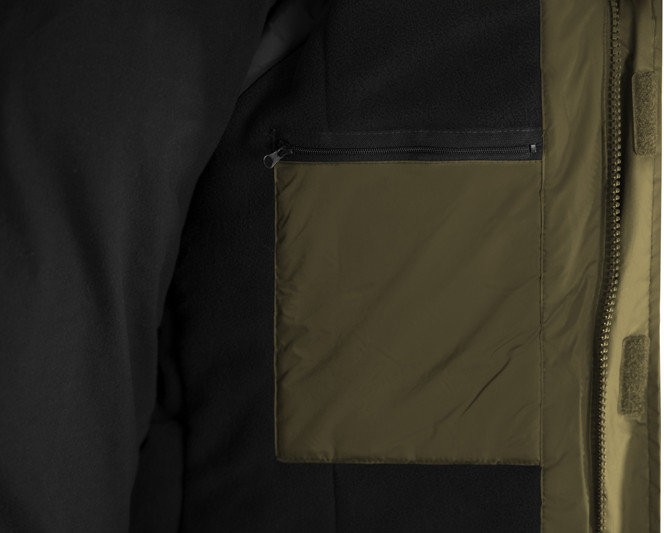 Vnútorná strana bundy je vybavená na dotyk príjemnou fleecovou vrstvou, ktorá sa postará o tepelný komfort aj počas naozaj nepriaznivého počasia. Rovnaký materiál bol použitý aj na golieri, aby sa predišlo nepríjemnému tlaku alebo škrabaniu na krku. Praktické vnútorné vrecko so zipsom poskytuje bezpečný priestor pre doklady či iné cennosti.