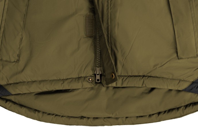 Bundu je možné zapnúť pomocou masívneho a odolného dvojzipsu, ktorý je z vonkajšej strany prekrytý lemom, čím je chránený pred vodou a vetrom. Pás bundy disponuje sťahovateľnými gumičkami, ktoré podstatne prispievajú k udržaniu tepla vo vnútri a minimalizujú možnosť podfúknutia. Samozrejmosťou je aj kapucňa, sťahovateľná dvoma gumičkami. Jej devízou je pútko so suchým zipsom, pomocou ktorého je možné ju veľkostne prispôsobiť alebo zavesiť.