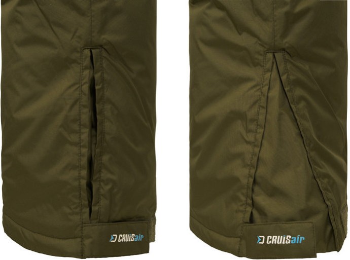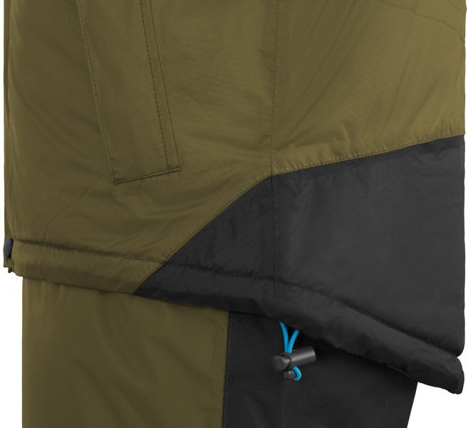 Praktickým prvkom je aj 35 cm dlhý zips, ktorý je možné rozopnúť zhora aj zdola. Vďaka tomu nie je potrebné vyzliekať bundu, čo oceníte najmä v prípade potreby. Spodná časť nohavíc je vybavená sťahovacími pásikmi so suchým zipsom, ktoré umožňujú prispôsobiť šírku členkov – či už ich chcete mať pevne obopnuté okolo obuvi, alebo naopak voľnejšie.