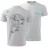 Kvalitné detské tričko v šedej farbe s naším originálnym dizajnom kapríka, žabky a komára na chrbte. Na hrudi je menší kvapík v tyrkysovej farbe a decentné logo výrobcu na zadnej časti ramena.