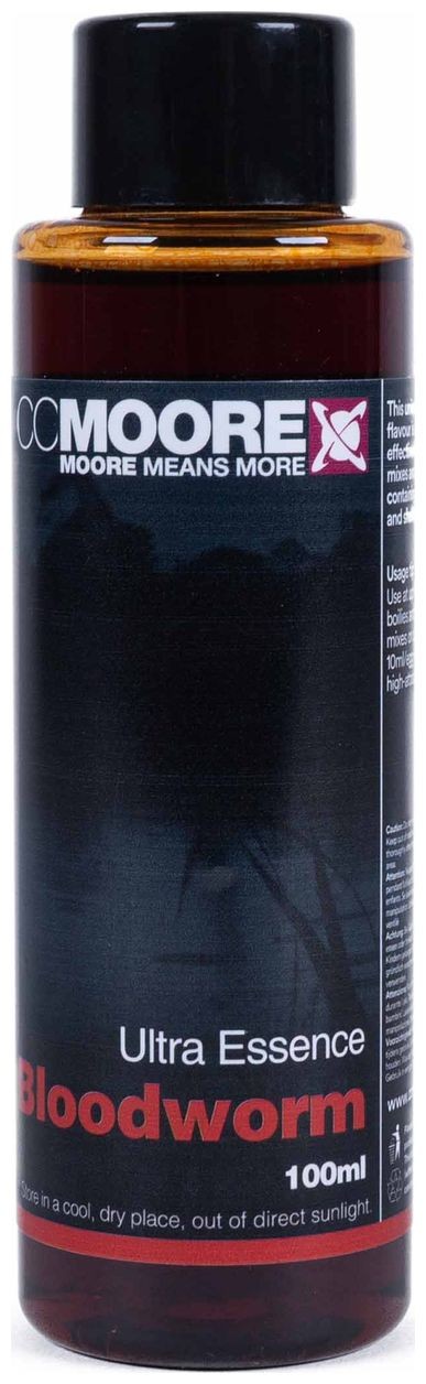 CCMoore Ultra Bloodworm Essence je vysoko koncentrovaná esencia s bohatou, chutnou príchuťou bloodworm (bloodworm = bloodworm / krvný červ), navrhnutá špeciálne pre použitie v boilies a hookbait zmesiach. Vďaka svojej silnej aromatickej sile zvyšuje príťažlivosť návnady a dobre sa mieša s väčšinou ostatných druhov aróm a posilňovačov.