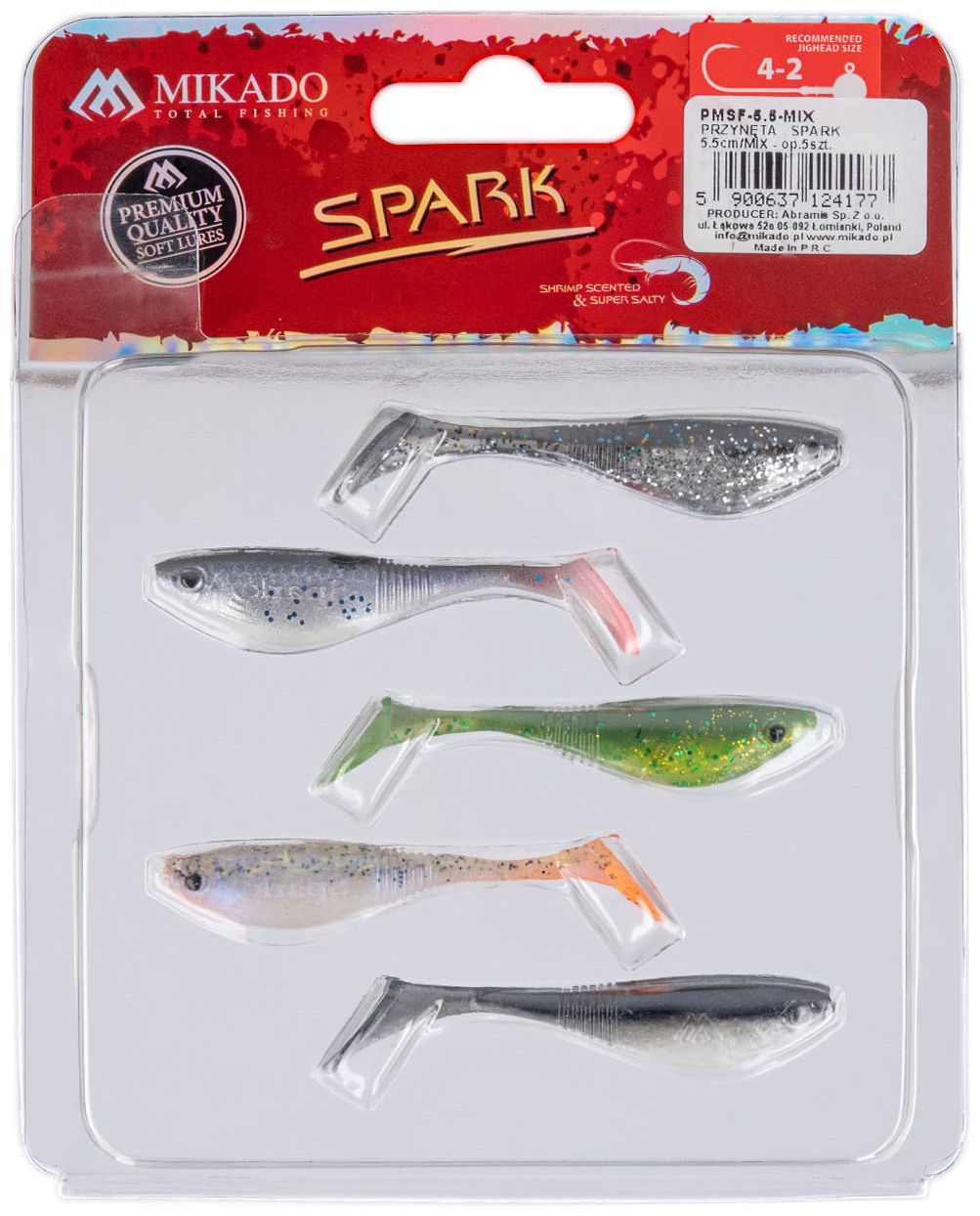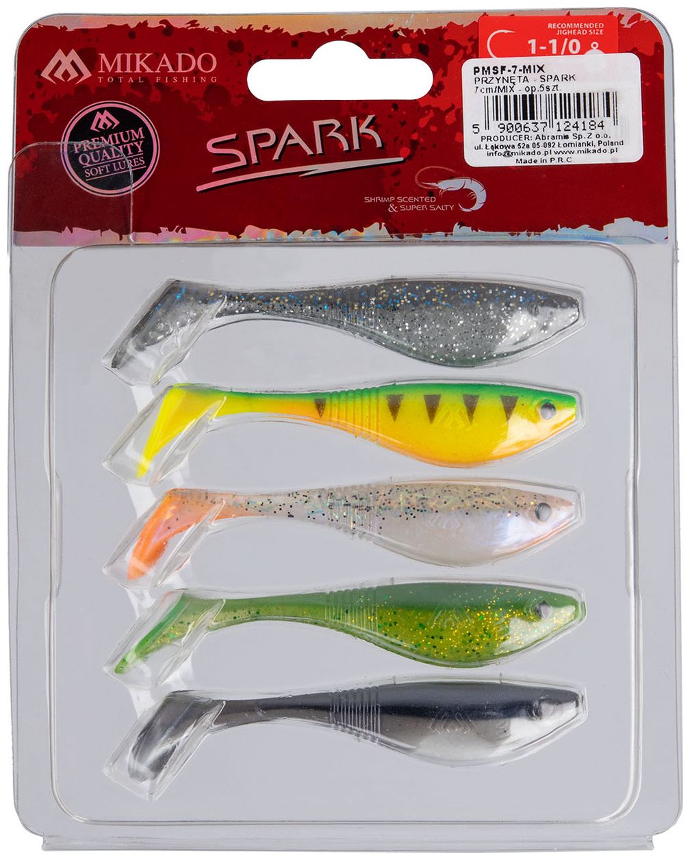 Spark je efektívna mäkká gumová nástraha od značky Mikado so zvýšeným povrchom tela a tenkým prechodom do chvostíka. Kombinácia tvaru tela a pružného chvostíka zaisťuje pomaly potápavú akciu a výraznú prácu chvostíka za akýchkoľvek podmienok, čo zvyšuje jej účinnosť pri love dravých rýb.
