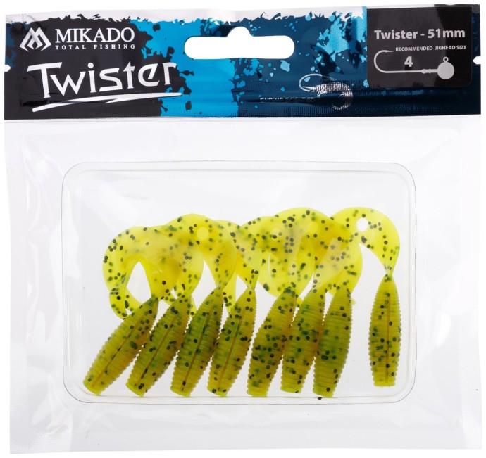 Ideálny klasický twister od značky Mikado. Mimoriadne atraktívna a účinná nástraha určená na lov všetkých druhov dravcov. Vďaka svojej konštrukcii a farbeniu výrazne priťahuje pozornosť rýb pri prívlači aj nahadzovaní.