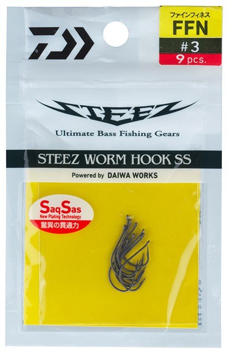 Pre háčiky Steez Worm Hooks je použitá špičková technológia ostrenia SaqSas. Obvyklé hrubosti na povrchu háčika sú takmer úplne odstránené špeciálnym fluoridovým povlakom – hrot háčika je ostrejší. To vedie k výrazne zlepšenému prenikaniu háčika a výsledkom je lepšia miera chytľavosti. Tieto háčiky sú vyrobené 100% v Japonsku.