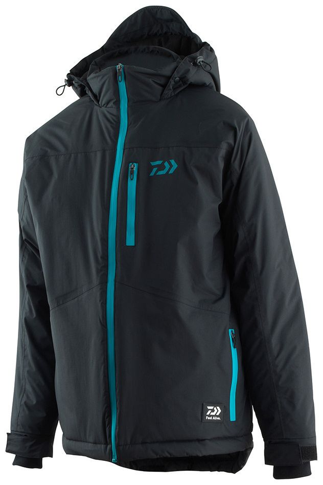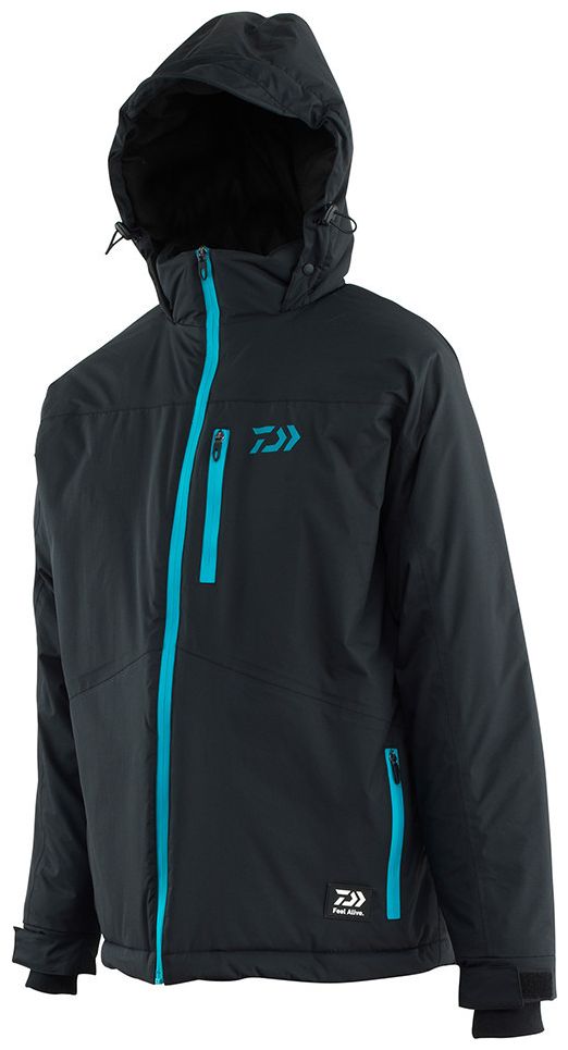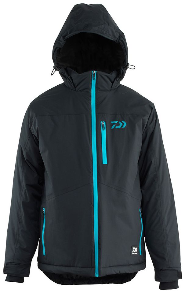 Hlavný zips bundy má vodeodolnú konštrukciu – rovnako ako obe priestranné postranné vrecká a malé náprsné vrecko. Veľká polstrovaná kapucňa je polstrovaná, chráni pred dažďom a vetrom a ponúka dobrý výhľad a pohyblivosť pri rybárčení. Pletené manžety zabraňujú vniknutiu vody a chladu cez paže.