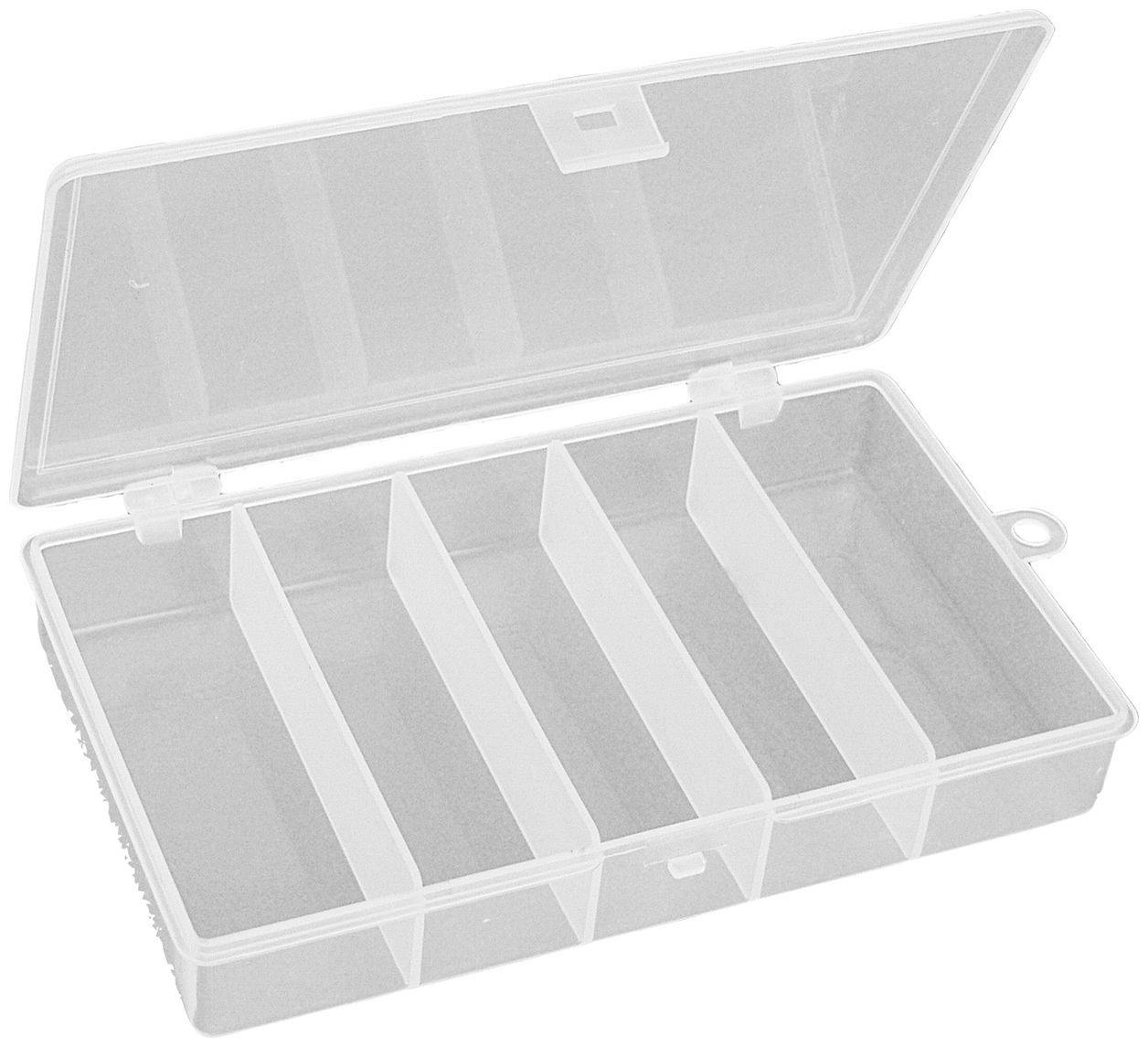 Stredne veľká krabička z odolného priehľadného plastu určená na prehľadné a bezpečné uloženie príslušenstva na rybárčenie. Krabička je navrhnutá tak, aby pojala sadu doplnkov pre konkrétny spôsob lovu a umožnila ľahký prístup k jednotlivým dielom.