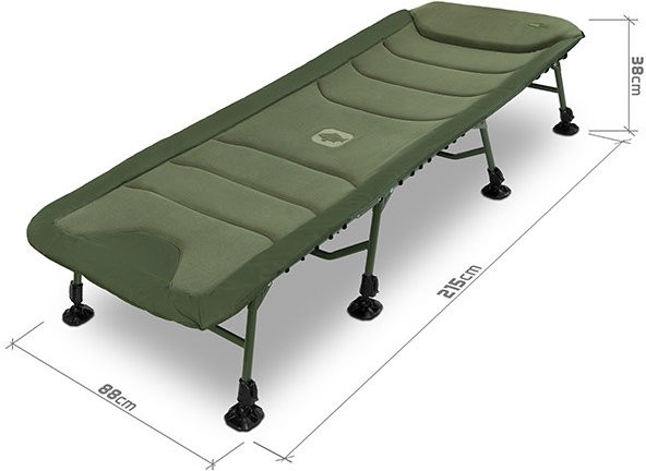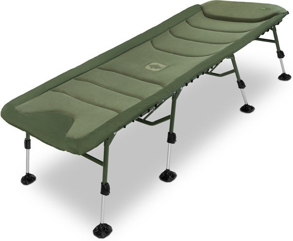 Lehátko Delphin ERGO CARP prináša maximálne pohodlie, stabilitu a odolnosť pre každého rybára, ktorý si potrpí na kvalitný odpočinok počas rybárčenia. Vďaka rozšíreným rozmerom matraca poskytuje dostatok priestoru aj pre vyšších užívateľov, pričom si vďaka ôsmim teleskopickým nohám zachováva vysokú stabilitu na akomkoľvek teréne. Výhodou je aj výška teleskopických nôh, ktorá výrazne prevyšuje štandard – nielenže umožňujú pohodlné vstávanie a ľahanie, ale po ich zdvihnutí vytvorí pod lehátkom priestorný úložný priestor.
