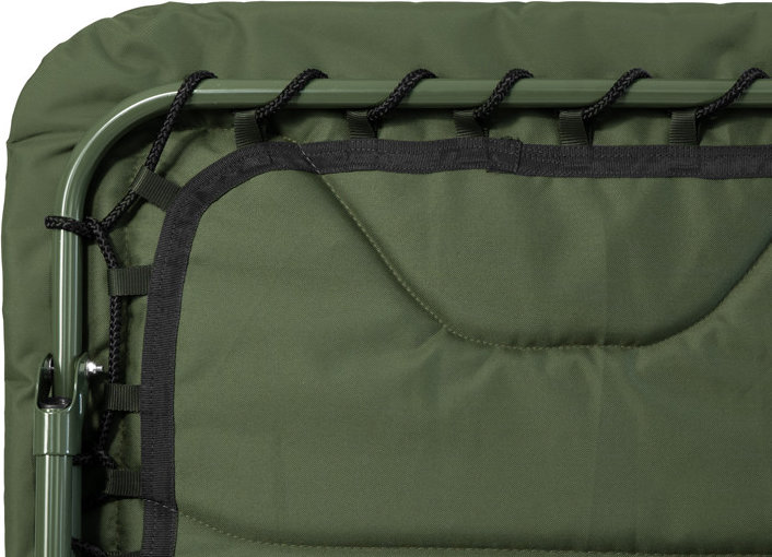 Matrac je po celej dĺžke potiahnutý mäkkým fleecom, ktorý je príjemný na dotyk a poskytuje príjemné teplo počas chladných nocí. Obvod matraca tvorí odolná 600D látka v olivovo zelenej farbe, ktorá zaisťuje vysokú životnosť a chráni okraje pred opotrebovaním. V kombinácii s ergonomickým tvarovaním a kvalitným prešívaním ponúka lehátko maximálny komfort počas odpočinku. Hlavová časť je pre ešte väčšie pohodlie zosilnená silnejším polstrovaním.
