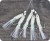 Systém pre lov makrel s piatimi háčikmi. Nad háčikom sú biele korálky a na háčiku je biela imitácia rybie hlavičky a fluorescenčné fólie s bielymi strapcami.