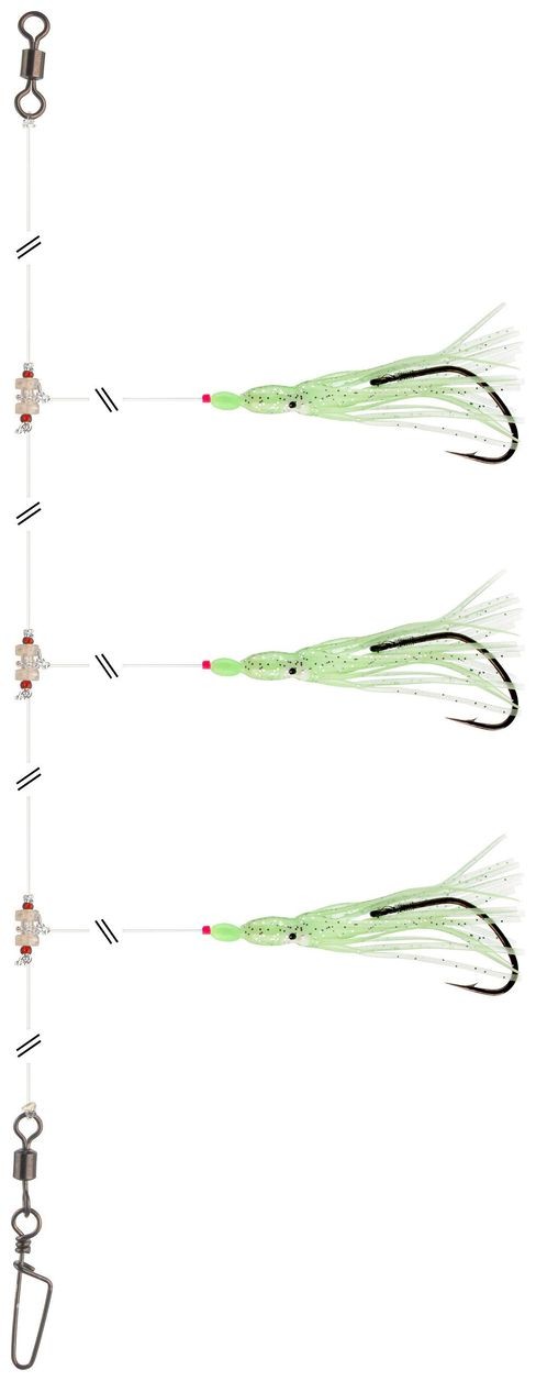 Tento náväzec so silnými háčikmi môžete používať samostatne, alebo ako súčasť návnady. Ideálne pre rybolov v Nórsku a pri love tresiek a polakov. Svietiace prevedenie zvyšuje atraktivitu nástrahy za šera a pri hlbších slaných vodách.