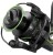 Základ navijaku tvorí odolný kovový rám a karobonové telo, ktoré sú doplnené mohutným preklápačom a kovovou rolničkou, vďaka ktorým ho môžete zaťažiť na maximum. Navijak disponuje prevodovým pomerom 5.8:1, ktorý sa spolu so zostavou 7+1 nerezových guličkových ložísk postará o jeho hladký a plynulý chod. Kovová kľučka ja založená na SCREW-IN systéme, čo znamená, že matica na upevnenie kľučky je umiestnená priamo v tele navijaku, čím dochádza k minimalizácii akejkoľvek vôle. Kľučka striebornej farby je osadená kvalitným gumovým madlom, ktoré veľmi dobre padne do ruky a spríjemní vám dlhé hodiny strávené vláčením. Po designovej stránke navijak pôsobí doslova prémiovo. Telo a kovová cievka sú matnej čiernej farby s lesklými šedými a zelenými prvkami. Wrinx má navyše ochranu voči slanej vode, takže je vhodný aj pre morský rybolov. Odolný hriadeľ je vyrobený z nerezovej ocele a dodáva navijaku potrebnú silu pri zdolávaní veľkých predátorov v ťažkých podmienkach.