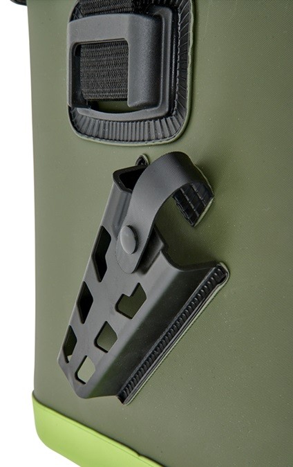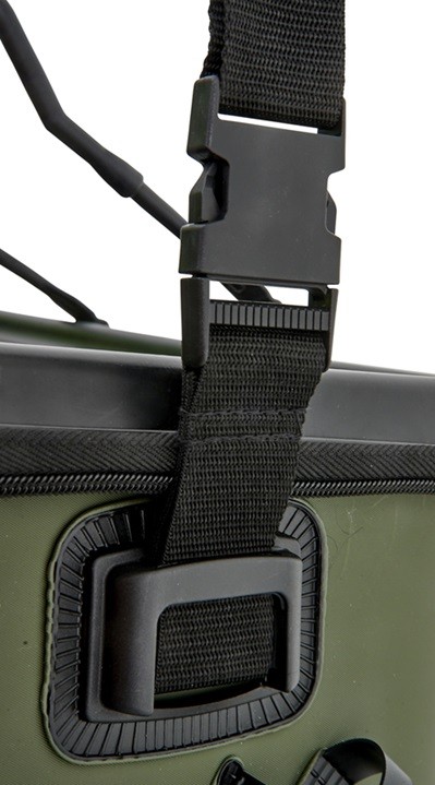 Nepremokavá taška Gunki Hard Lid 40 je vyrobená z 1,5 mm EVA materiálu, ktorý je odolný a spoľahlivo chráni obsah pred vodou. Model HARD LID 40 má zosilnené steny a dno opatrené protišmykovými podložkami. Jeho pevné veko s presahmi chráni vnútro proti dažďu a zároveň slúži ako pracovná plocha – okraj veka je prispôsobený na uloženie SAFE BAG LID alebo krabičky o rozmere 35×22 cm. Odnímateľný a nastaviteľný ramenný popruh so systémom klipov zaisťuje pohodlie aj bezpečnosť pri prenášaní, ergonomické madlo uľahčuje manipuláciu. SAFE BAG PM/MM/GM/LID tašky sú špeciálne navrhnuté tak, aby sa zmestili do tohto modelu a umožnili prehľadné a flexibilné usporiadanie vybavenia (predávajú sa samostatne). Dva držiaky na prúty a vrecko na kliešte podčiarkujú, že tento bakkan je ideálny pre rybárov loviacich z lode, kajaku, paddle boardu alebo z brehu.