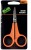 Nožnice z radu Edges s ozubeným ostrím pre hladké strihanie aj tých najjemnejších šnúr a návazcových materiálov. Reflexná oranžová farba minimalizuje možnosť straty nožníc