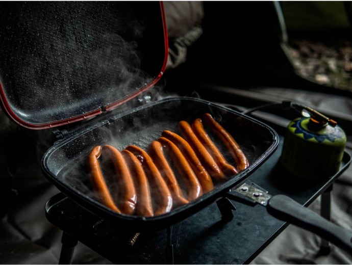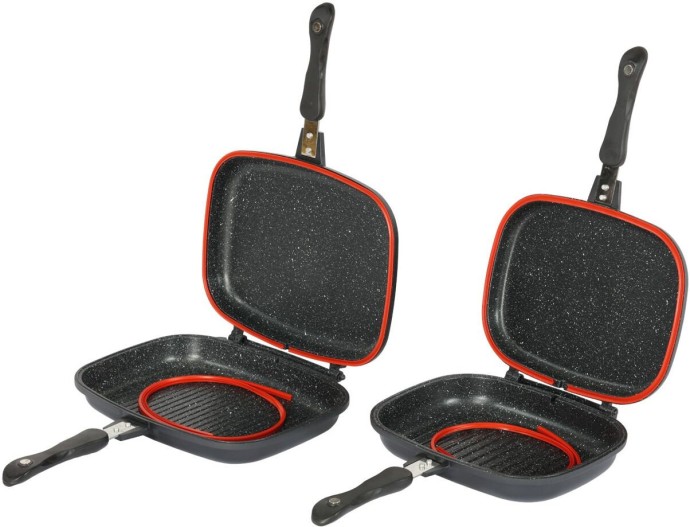 Akčný set, ktorý obsahuje obojstrannú panvicu s nepriľnavým povrchom Non-Stick a sadu príborov z čiernej nerez ocele s prepravným obalom. Parádny darček pre priaznivcov pobytu pri vode av prírode.