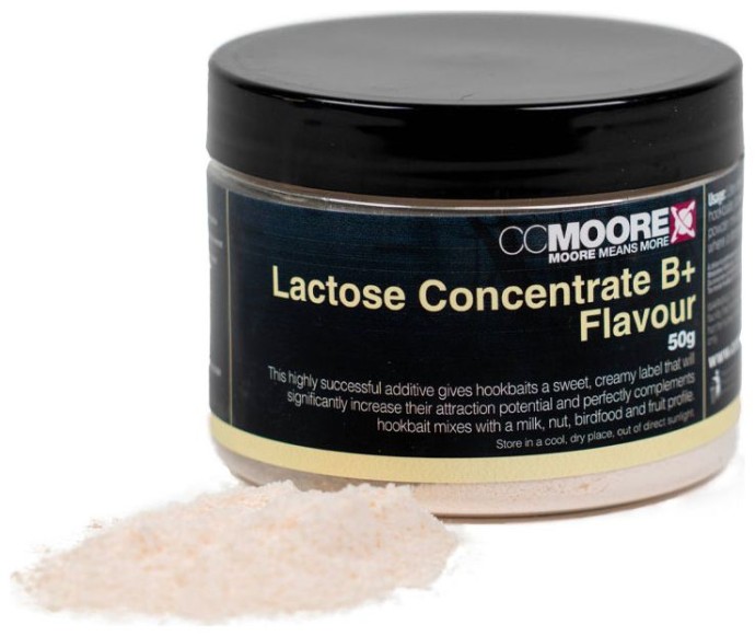 Lactose B+ Concentrate Flavour je veľmi silný práškový koncentrát s vanilkovým/krémovým charakterom určený ako prísada do kŕmenia a háčikových návnad. Ide o syntetický prášok s výraznou arómou, ktorá pôsobí aj pri nízkych dávkach a dokáže stimulovať príjem potravy aj v chladných a menej priaznivých podmienkach. Umožňuje pridanie bohatého, krémového profilu do vysoko atraktívnych háčikových zmesí.