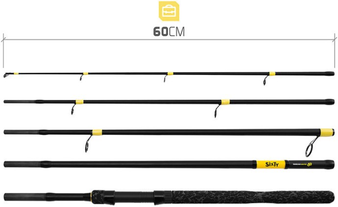 Delphin SIXTY je jedinečný delený prút s mimoriadne kompaktnými transportnými rozmermi, ktorý prináša vynikajúci pomer ceny a výkonu a je využiteľný takmer pri všetkých typoch rybolovných techník. Vďaka svojej nevšednej 5 dielnej konštrukcii sa radí medzi špičku v kategórii cestovných prútov. V rozloženom stave nepresahuje dĺžku 60 cm, vďaka čomu sa perfektne zmestí do batohu alebo priamo do príručnej batožiny v lietadle. Túto veľkú výhodu ocenia rybári na cestách, ktorí nechcú nič nechať na náhodu a chcú mať svoju výbavu vždy po ruke.