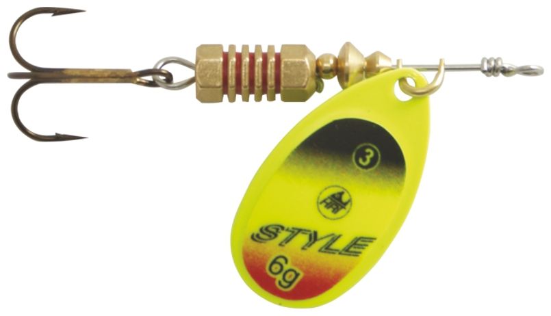 Rotačné trblietka pre najnáročnejších rybárov. Je určená skôr do pokojných riek, rybníkov a priehrad. Točí sa aj pri veľmi pomalom ťahaní. Zo širokej ponuky hmotností a farieb si určite vyberie každý rybár. Značkový VMC trojháčik je veľmi ostrý a pevný, nehrozí teda, že sa ryba pri zábere nepichne.