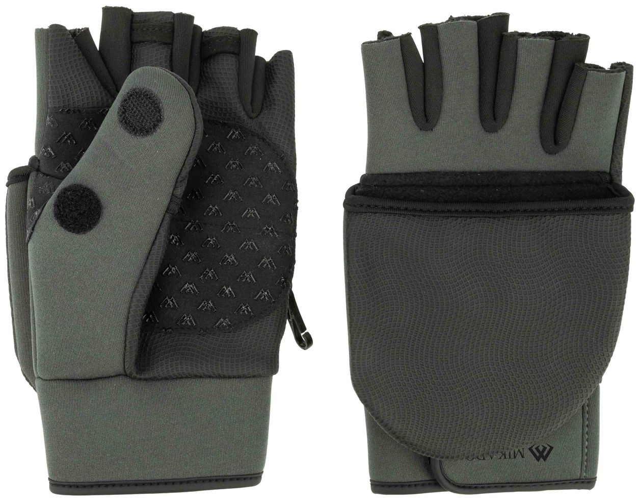 Rukavice-mičky (neoprenové palčiaky) určené pre zimný rybolov a ďalšie outdoorové aktivity. Vonkajšia vrstva je z neoprénu, vnútorná podšívka je z fleecu pre lepší tepelný komfort. Konštrukcia umožňuje odhalenie prstov pre presnú manipuláciu s vybavením, zatiaľ čo silikónová potlač na dlani zaisťuje pevný a istý úchop.
