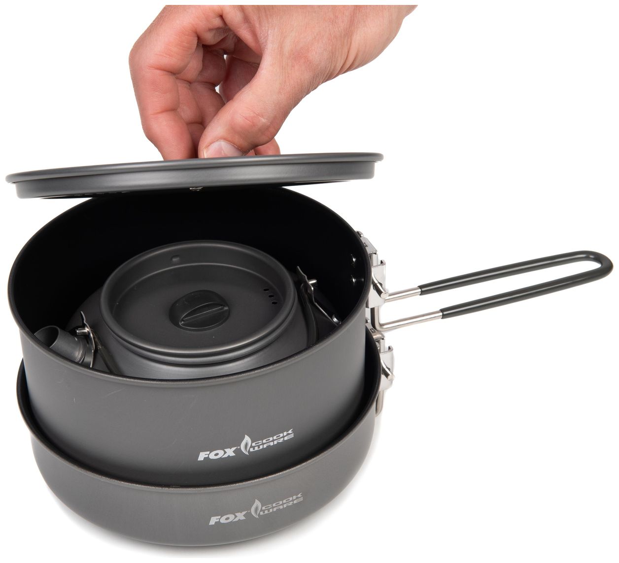 V tejto 3 dielnej sade riadu získate panvicu, stredne veľký hrniec s pokrievkou a konvicu 0,9 l. Steny hrnca a panvice sú vyrobené zo silnejšieho hliníka, čo umožňuje použitie kvalitnej nepriľnavej povrchovej úpravy, ktorá zaisťuje ľahké varenie a čistenie. Súprava je navrhnutá pre kompaktné uloženie a pohodlné používanie pri rybárskych výpravách či kempovaní.