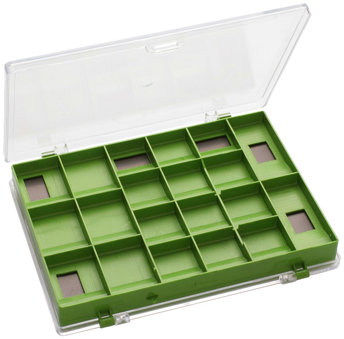 Profesionálna krabička s magnetickým dnom, vyrobená predovšetkým pre bezpečné a prehľadné skladovanie háčikov. Vďaka magnetickému dnu sa háčiky nepohybujú voľne vo vnútri krabičky, zostávajú pevne na mieste a nielenže sú po ruke, ale tiež si udržia ostrie.