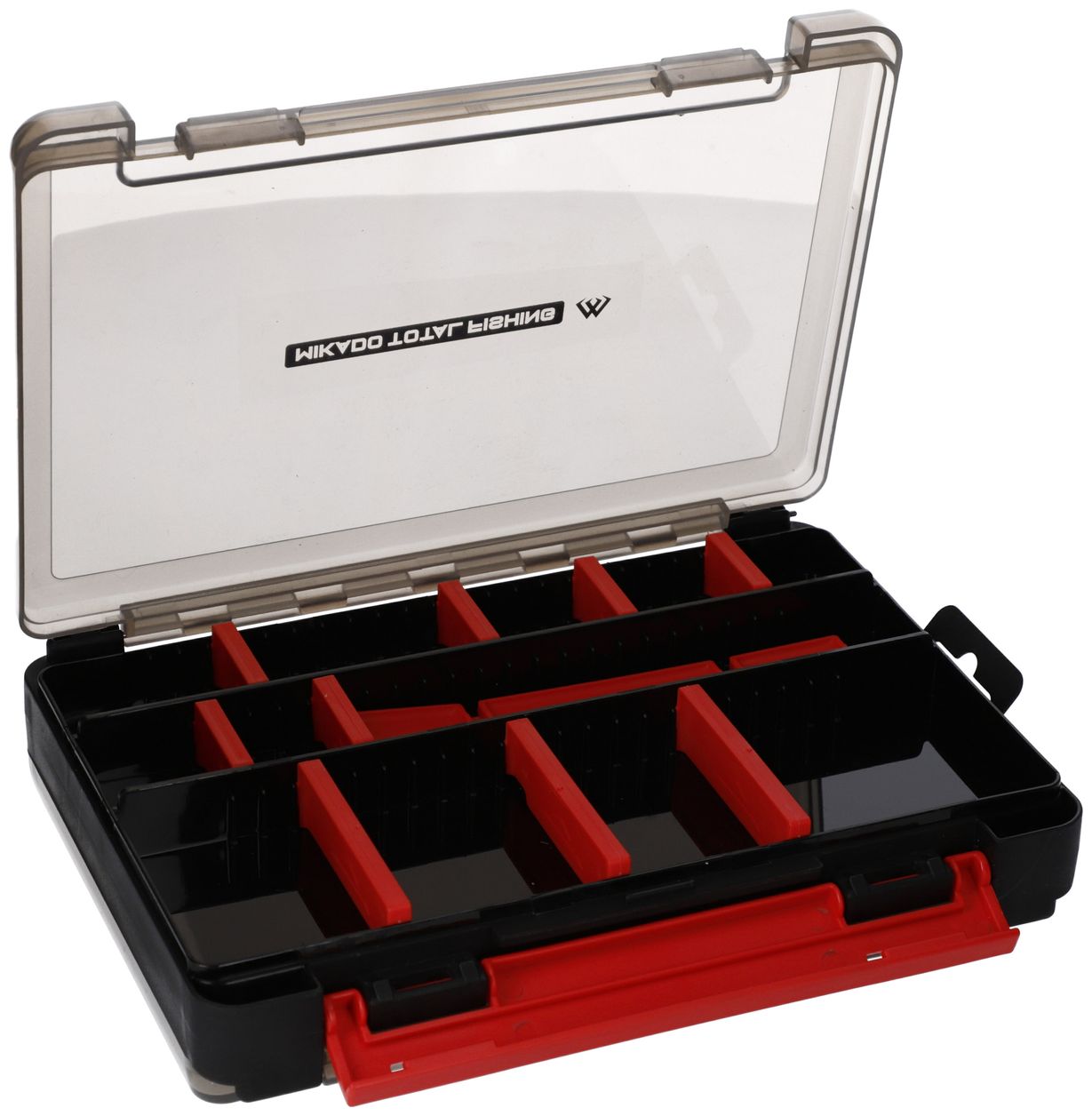 Obojstranný rybársky box Mikado H1907 vyrobený z kvalitného plastu s bezpečným uzatváraním. Na jednej strane je mäkká hubka (foam) určená na uloženie wobblerov alebo jemnejších nástrah; na druhej strane sú klasické plastové priehradky, ktoré zaistia poriadok pre rotačky, plandavky, cikády a ďalšie prívlačové nástrahy. Vďaka kompaktným rozmerom je vhodný ako do batohu, tak priamo do rybárskeho kufra.
