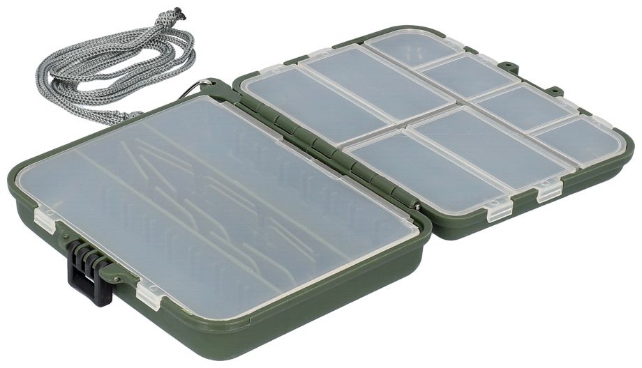 Malá obojstranná krabička určená na ukladanie najmenšieho rybárskeho príslušenstva a nástrah. Krabička je vybavená šnúrkou na zavesenie na krk, takže je ideálna pri priamom love pri vode.
