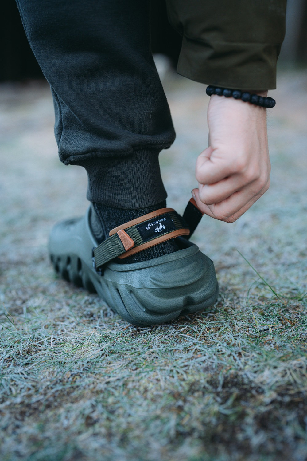 Vhodné na pohyb okolo bivaku a rýchle obutie pri zábere.