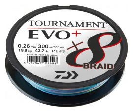 Dobre známa pletená šnúra Tournament 8 bola ešte zdokonalená a vznikla verzia Evo+. Najmä povrchový poťah bol vylepšený väčším množstvom silikónu, čo vedie k menšiemu treniu počas nahodenia a dlhším hodom. Navyše je redukovaný zvuk vznikajúci pri prechode očkami. Vďaka tomu je nová šnúra Tournament X8 Braid Evo+ technicky jednou zo svetovo najlepších šnúr na trhu.