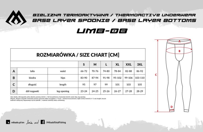 Vysoko kvalitné termobielizeň Mikado vo forme spodných nohavíc (base layer) zaisťuje optimálny tepelný komfort a voľnosť pohybu. Minimalistický dizajn a pohodlný, anatomický strih ich predurčujú na použitie pri rybárčení aj širokej škále outdoorových aktivít.
