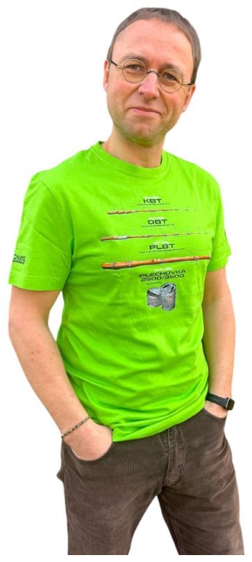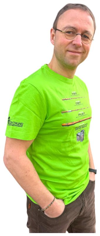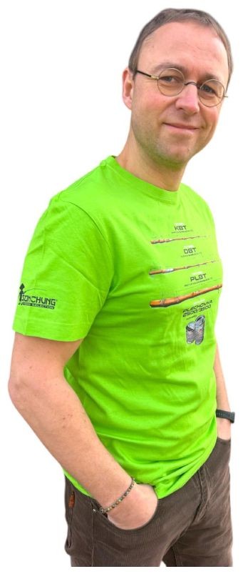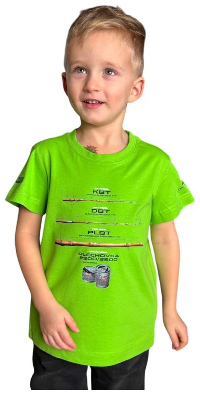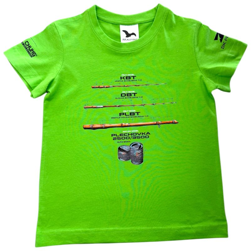 Tričko s potlačou prútov a navijaku, na ramenách s logami ŠON CHUNG FISHING SELECTION a DK FISHING.