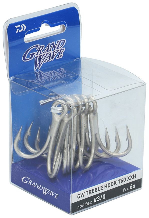 DAIWA Grandwave Treble Hook T60 XXH sú robustné a extra silné trojháčiky navrhnuté predovšetkým pre morský rybolov. Trojháčiky XXH sú určené pre nekompromisný lov veľkých druhov rýb ako halibut, kranas, tuniak alebo chňapal v teplých vodách. Hodí sa k veľkým popperom a stickbaitom, kde je potrebná vysoká pevnosť háčika a skvelá ostrosť.