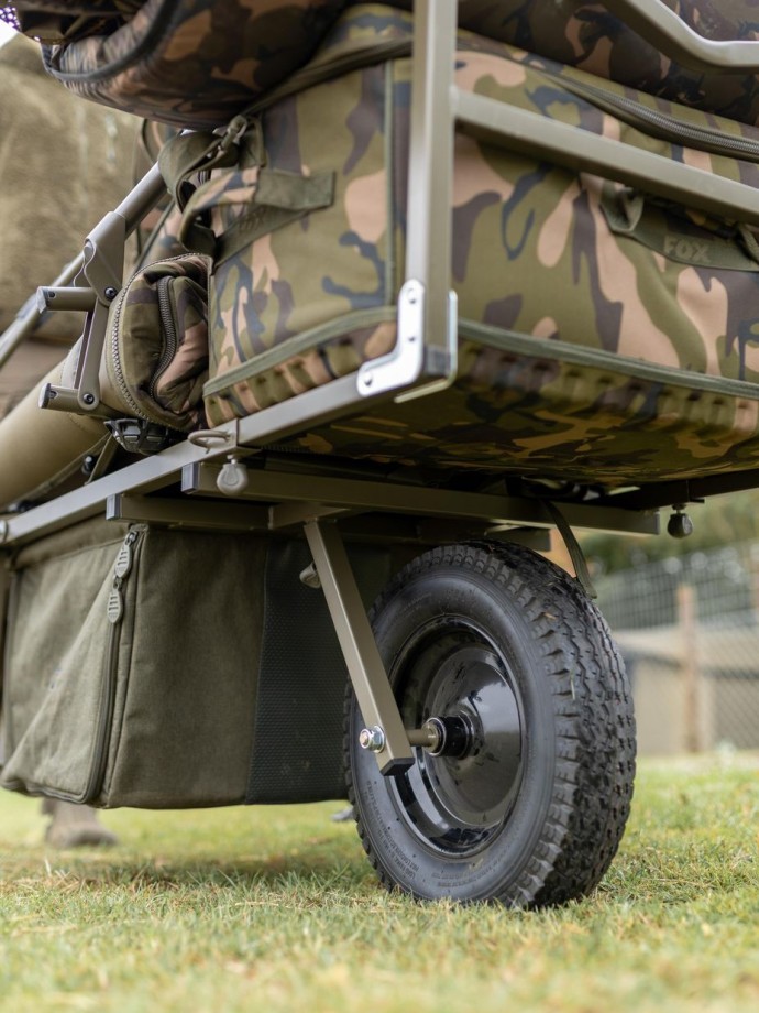 Voyager Barrow od značky Fox je nízky transportný vozík navrhnutý na jednoduché a stabilné prenášanie výbavy. Vďaka nastaviteľnému a odnímateľnému ergonomickému madlu, rýchlemu systému pripnutia kolesa a pevnému oceľovému rámu je ideálny pre rybárov, ktorí potrebujú robustné, pritom skladacie riešenie pre prevoz vybavenia.