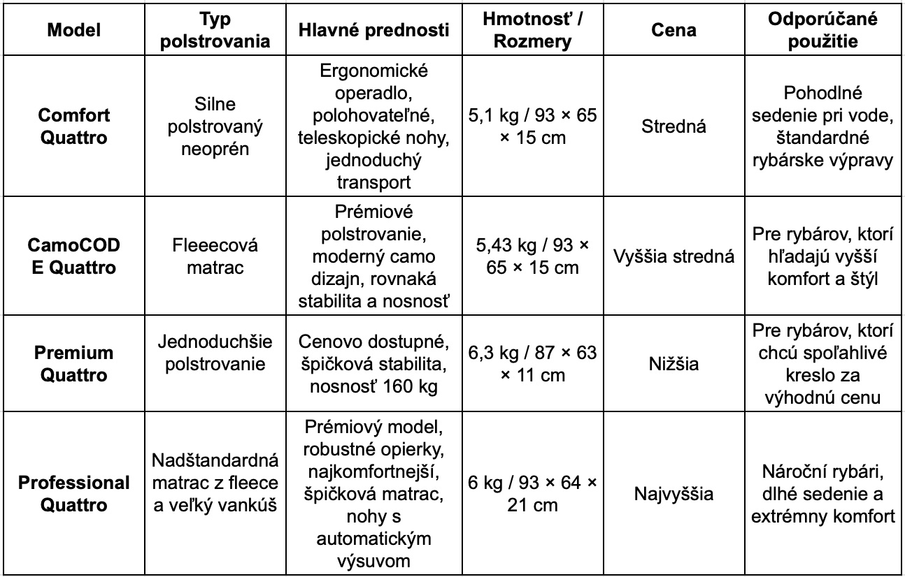 Vyberte si svoje rybárske kreslo z rodiny Mivardi Quattro