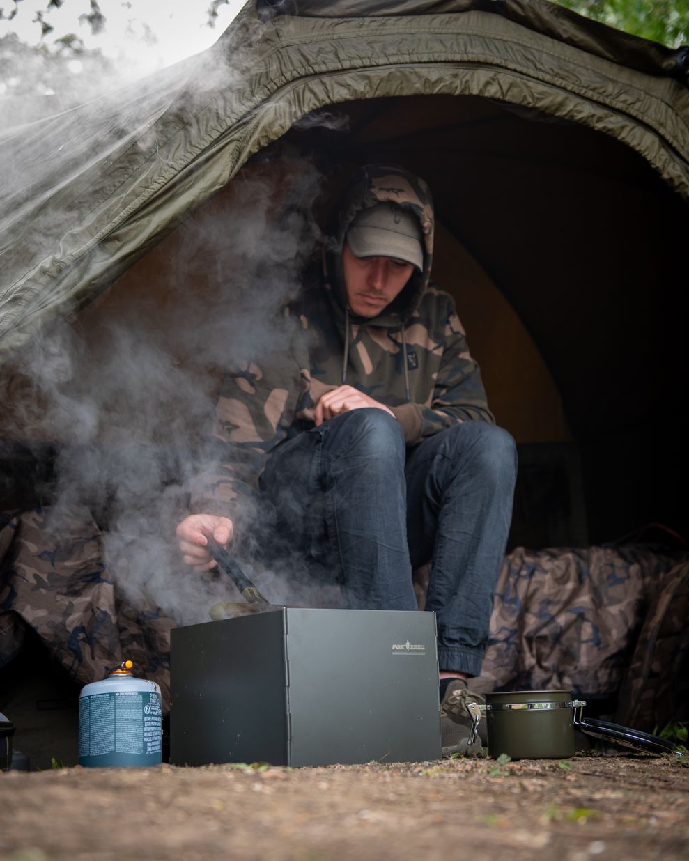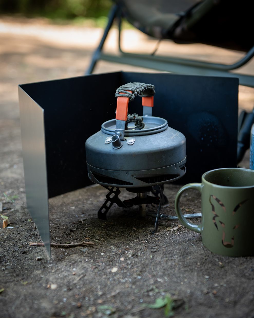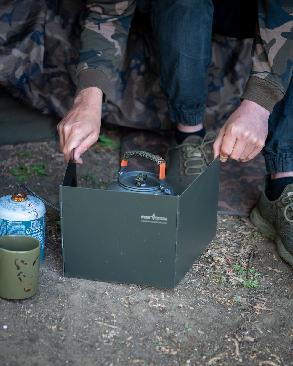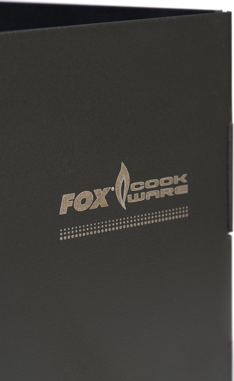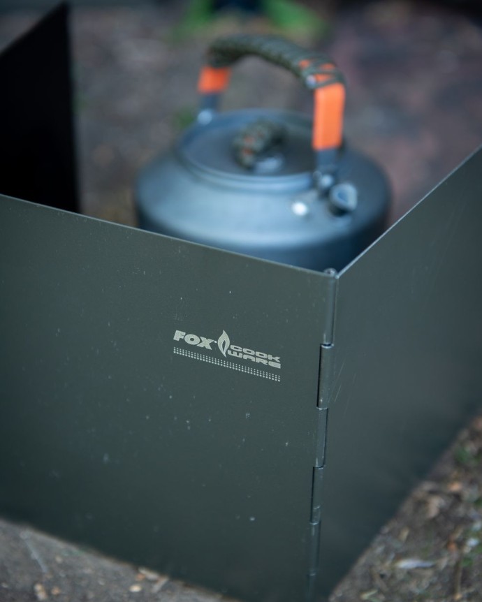 3-dielna hliníková zástena ideálna pre použitie s kempingovými varičmi a varičmi Fox Cookware. Vonkajšia strana je v khaki farbe, vnútorná strana má nepriľnavý povrch umožňujúci jednoducho zotrieť olej a mastnotu.