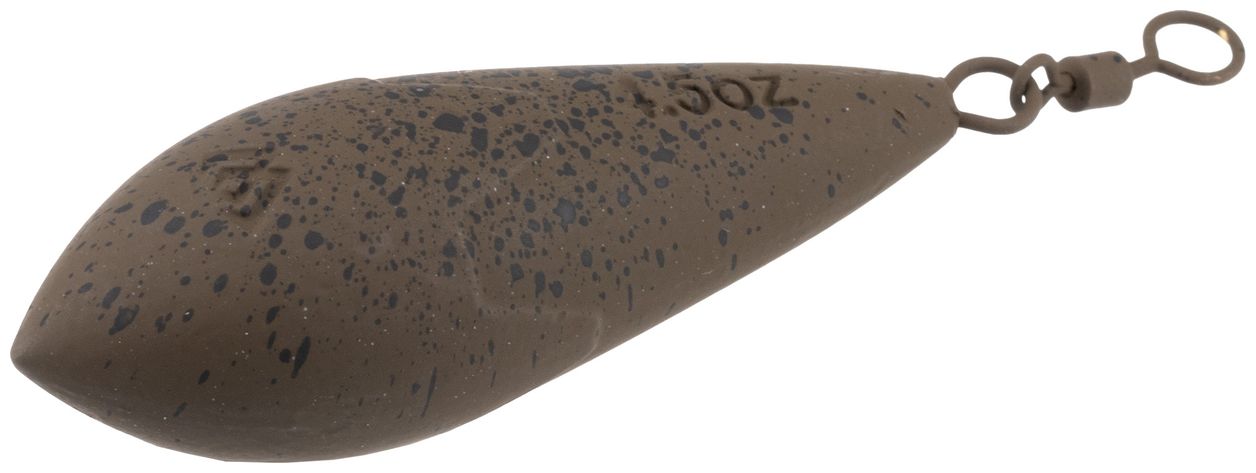 Olovo je vybavené pevným obratlíkom s veľkým očkom pre ľahké a bezpečné napojenie náväzca a manipuláciu. Povrchová úprava je matná v maskovacom (camo) prevedení, ktorá minimalizuje odlesky vo vode a zvyšuje nenápadnosť na dne.