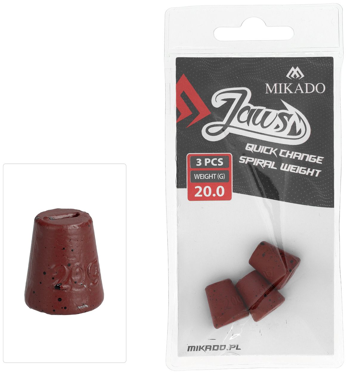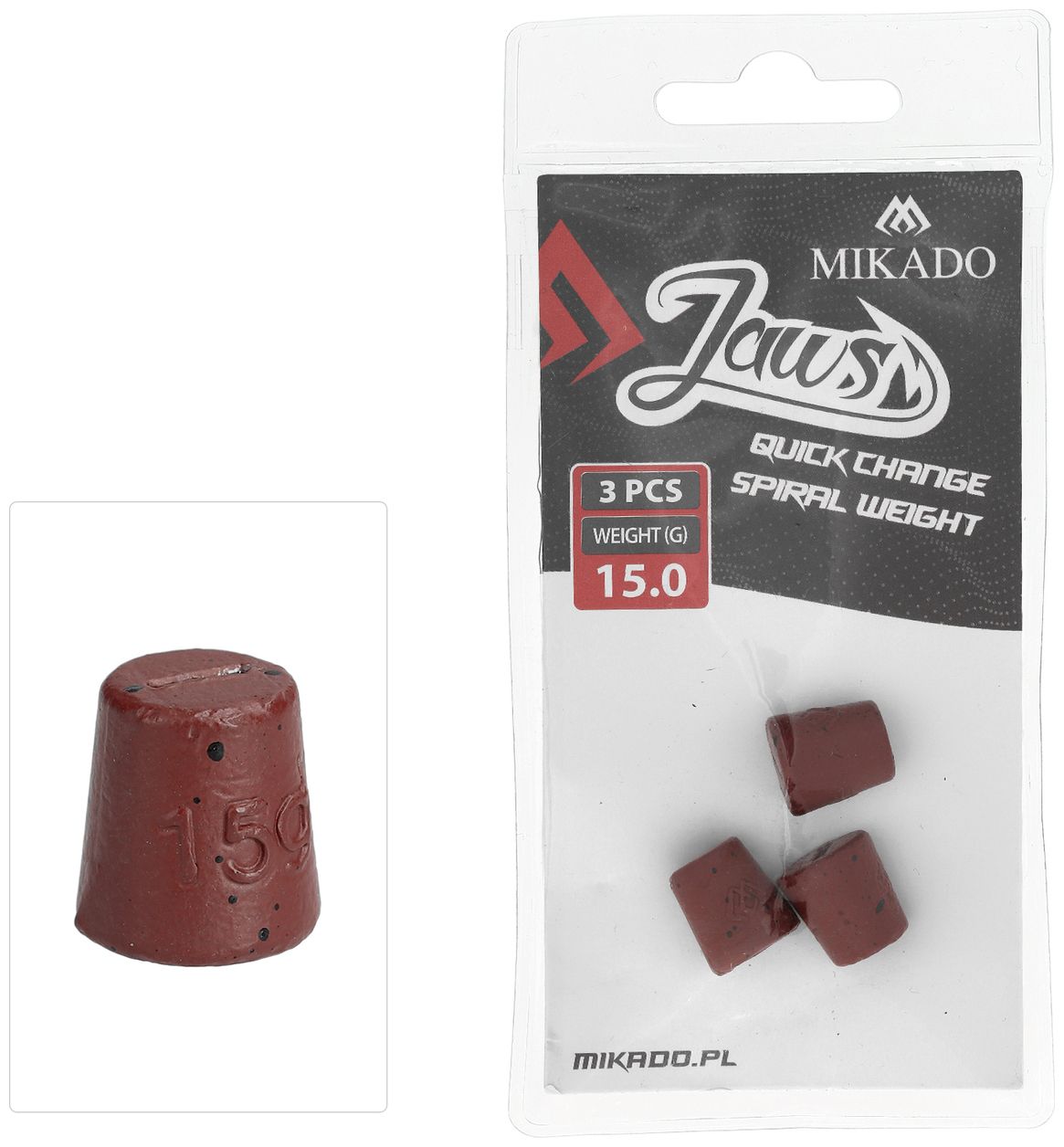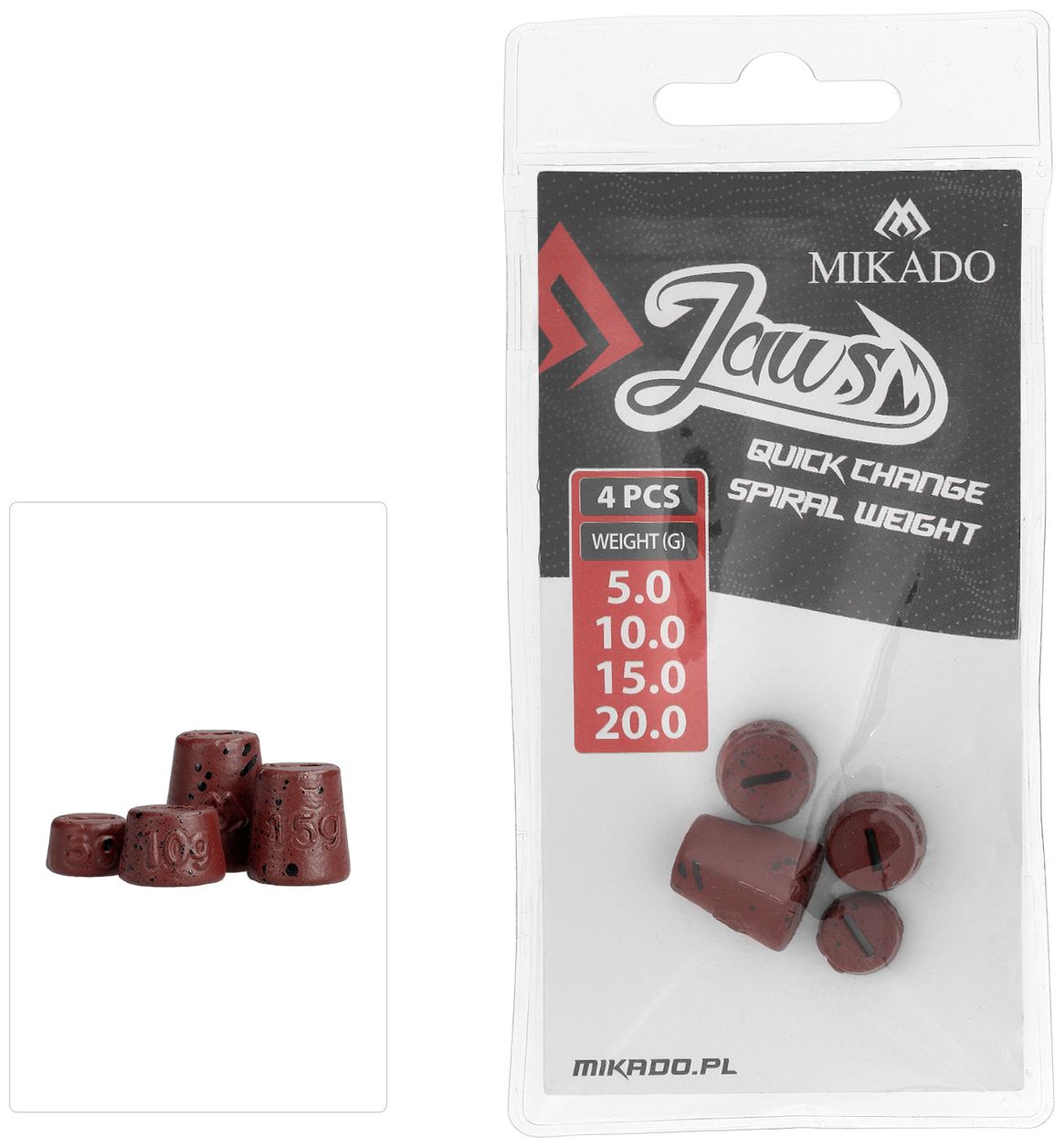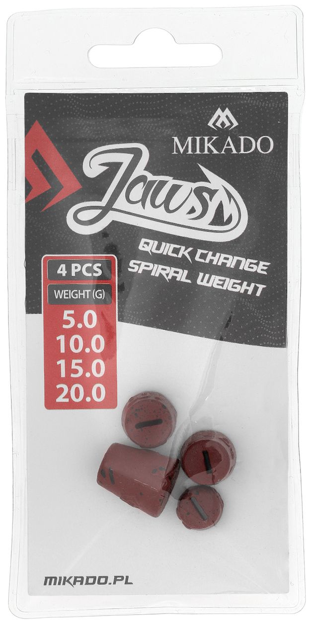 Profesionálna výmenná záťaž pre systém Jaws Quick Change Spiral, určená na rýchlu a pohodlnú výmenu hmotnosti priamo pri nástrahe. Špirálový systém umožňuje jednoduché nasadenie a sňatie závažia bez nutnosti zložitej manipulácie či výmeny náväzcov. Špirálové uchytenie umožňuje jednoduchú a rýchlu výmenu hmotnosti bez nutnosti rozväzovania alebo zložitých úprav náväzca.