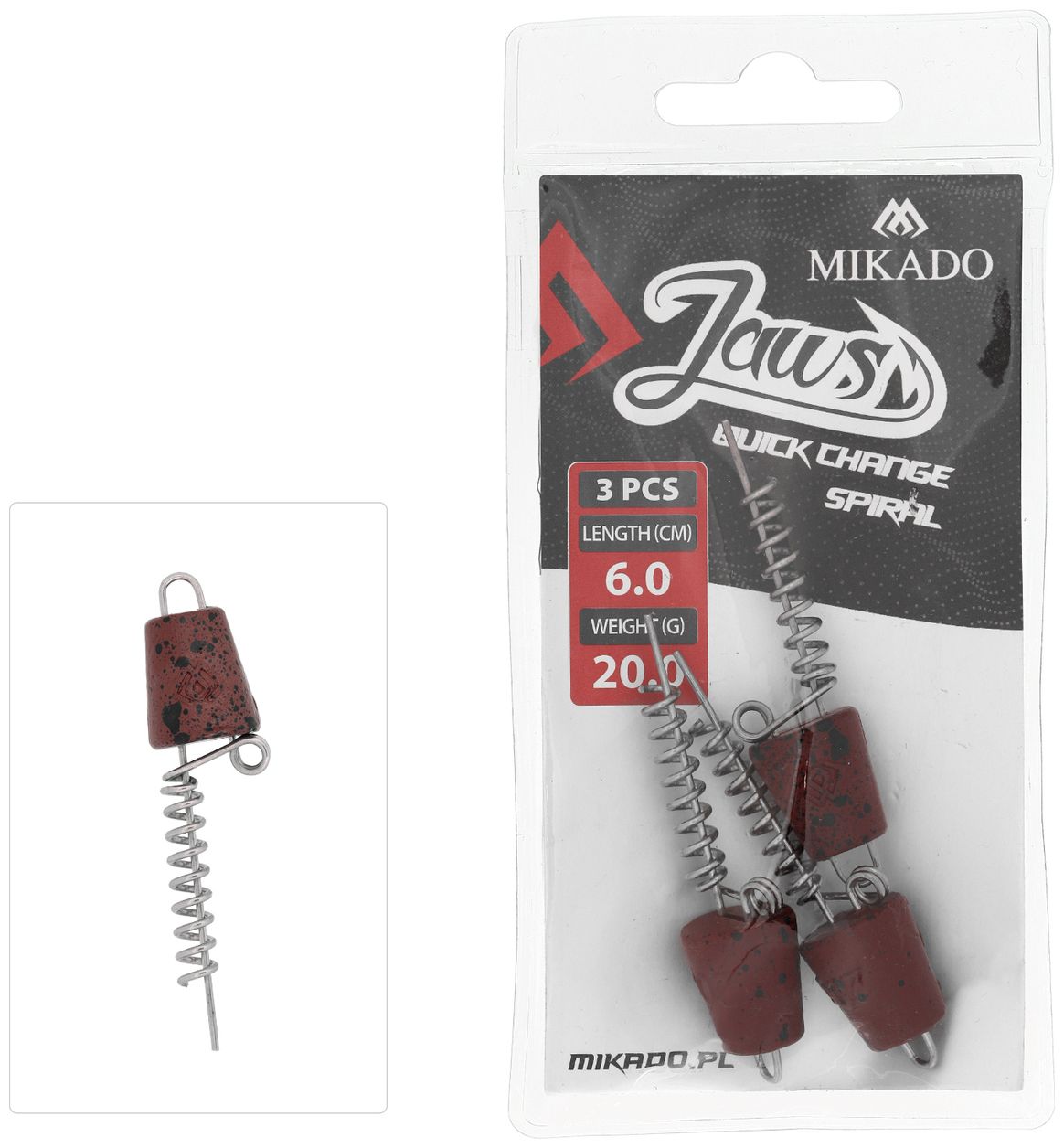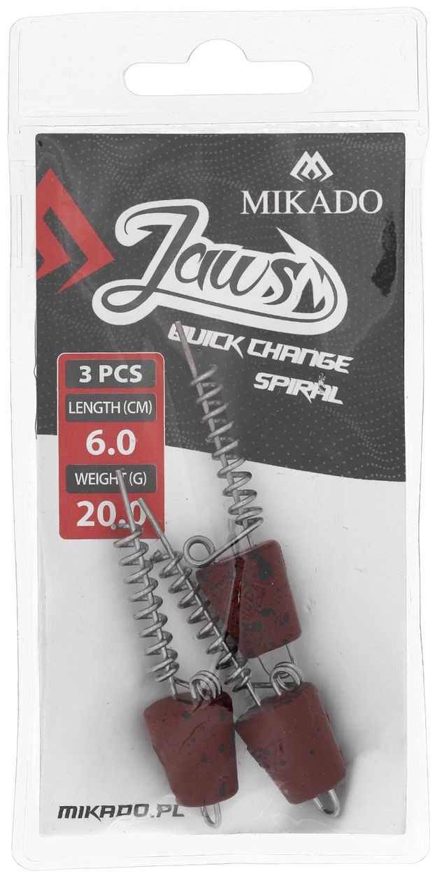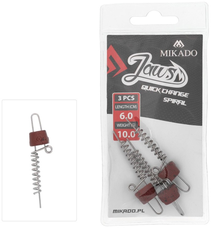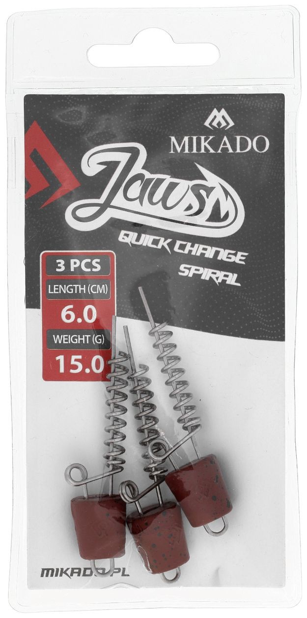 Špirála Jaws Quick Change Spiral je určená pre mäkké nástrahy a umožňuje rýchlu a jednoduchú výmenu záťaže bez nutnosti vybrať špirálu z nástrahy. Vďaka tomu zostáva guma neporušená aj pri častých zmenách hmotnosti. Inovatívny systém Quick Change umožňuje meniť gramáže bez poškodenia nástrahy, čo ocenia prívlačoví rybári, ktorí často upravujú hmotnosť podľa podmienok.